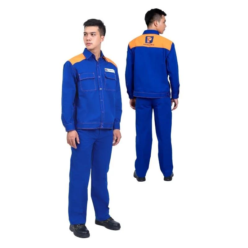Thiết kế: Áo có 2 túi ngực, có in logo trước ngực và sau lưng, sử dụng cúc cài. Quần có 2 túi chéo, túi hậu, có chun co giản 2 bên hông